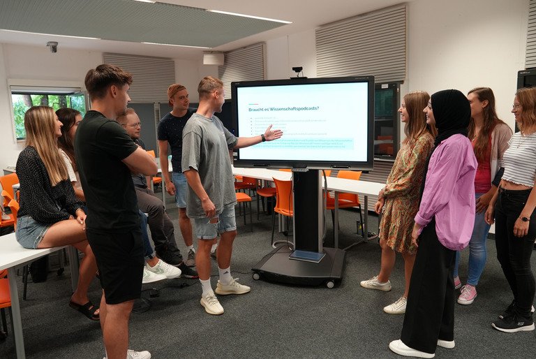 Im Rahmen eines Seminars im Sommersemester haben sich die ersten sieben Studierenden des neuen Masterstudiengangs "Kommunikation in der Digitalen Gesellschaft", kurz: KoDi, einer besonderen Aufgabe gestellt: Sie entwickelten ein wissenschaftliches Podcast-Format. Gemeinsam mit Prof. Dr. Ralf Hohlfeld arbeiteten sie innovative Themen aus der Kommunikationswissenschaft auf, wie die Klimawandel-Kommunikation, den richtigen Umgang mit Karikaturen und Memes sowie Propaganda-Strategien Russlands, und interviewten dazu Expert*innen der Universität Passau im Tonstudio des Zentrum für Medien und Kommunikation (ZMK). Sie sprachen mit Prof. Dr. Hannah Schmid-Petri (Wissenschaftskommunikation), Prof. Dr. Thomas Knieper (Digitale und Strategische Kommunikation) und Prof. Dr. Florian Töpfl (Politische Kommunikation mit Schwerpunkt auf Osteuropa).