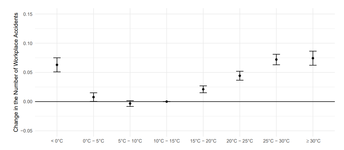 Wie wirken sich solche extremen Temperaturen auf Unfälle auf der Arbeit aus? Diese Frage haben Katharina Drescher, Nachwuchsökonomin an der Universität Passau, und ihr Ko-Autor Benedikt Janzen von der Universität Bern anhand von Daten aus der Schweiz untersucht. In ihrer Studie werteten die Forschenden Arbeitsunfälle von 1996 bis 2019 aus. Die Schweiz eignet sich für eine solche Untersuchung insofern, als es hier auf kleinem Raum eine große Variation an Temperaturen gibt. Zudem stehen die administrativen Unfalldaten tagesgenau und auf kleinteiliger regionaler Ebene zur Verfügung, so dass sich diese mit dem Wetter abgleichen lassen.