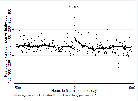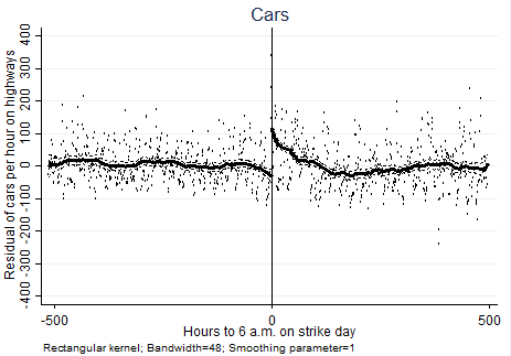 - Die Verkehrsunfälle steigen und auch die Zahl der im Straßenverkehr Verletzten. Anhand polizeilicher Unfallstatistiken zeigen die Ökonomen, dass die Zahl der verletzten Personen während der morgendlichen Stoßzeiten an Streiktagen um 20 Prozent stieg.