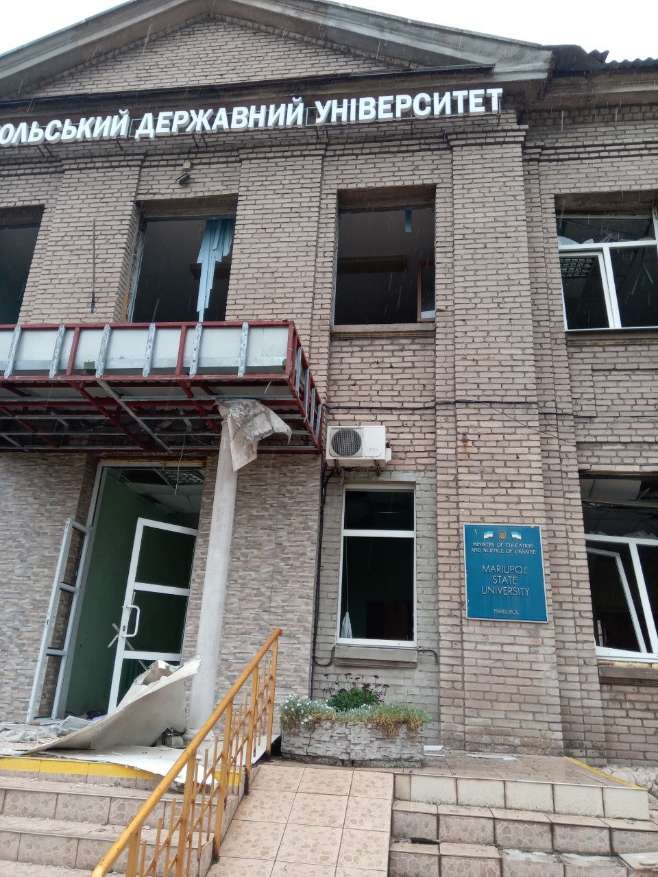 Bilder der Verwüstung: Die Studierenden von Dr. Melnykova-Kurhanova haben die Zerstörung ihrer Fakultät an der Staatlichen Universität in Mariupol dokumentiert. Dr. Melnykova-Kurhanova selbst hat ihren Alltag in der belagerten Stadt fotografiert. Aus dem Fenster ihrer Wohnung sind Menschen zu sehen, die mangels Strom versuchen, draußen Essen zu kochen. Auf einer Straße nahe ihres Wohnorts bilden sich lange Staus von Menschen, die versuchen, mit dem Auto aus der Stadt zu fliehen.