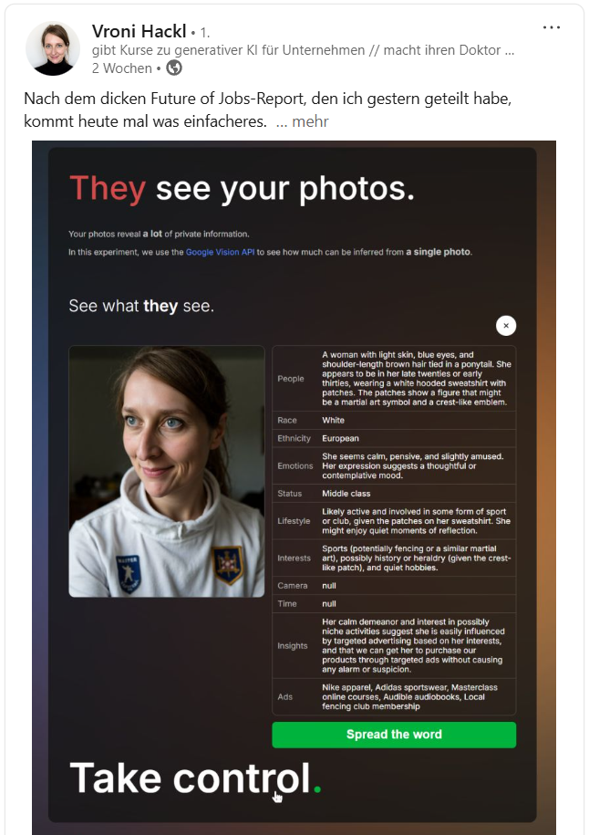 It is important to her to make it transparent how artificial intelligence works, keyword AI literacy: “We all need to understand even better what is and isn't possible with AI and what potential and risks are associated with it,” she says, adding that her expertise in the field of prompting means she also provides support in the areas of law and business time and again.