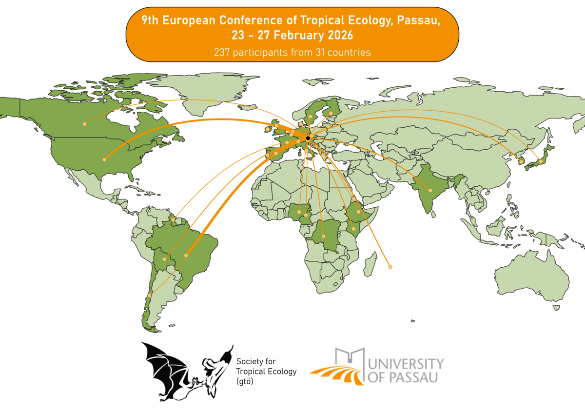 The European Conference of Tropical Ecology was held in Passau from 23 to 27 February 2026 thanks to Professor Christine Schmitt, holder of the Chair of Physical Geography with a focus on Human-Environment Research. Together with the Society for Tropical Ecology (gtö), she organised the event, which was attended by nearly 240 scientists from 31 countries. In keeping with the conference’s motto, ‘Species – Ecosystems – People’, the presentations ranged from basic ecological research to the question of how the protection and use of sensitive ecosystems can be reconciled.