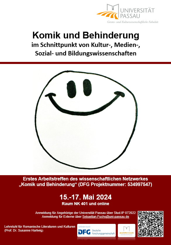 Es fehlt nicht nur an umfassenden Theorien, sondern bereits an Bestandsaufnahmen und Analysen konkreter fiktionaler und nicht-fiktionaler Texte. Dabei ist die Frage danach, unter welchen Bedingungen komische Darstellungen von Behinderung positive Vorstellungsbilder von Menschen mit Behinderung fördern, im Lichte der UN-Behindertenrechtskonvention von 2006 und im Zusammenhang mit Inklusion aktueller als je zuvor. Sieht man Komik und das damit verbundene Lachen als menschliche Reaktion auf Beeinträchtigungen von Handlungsmöglichkeiten und auf Normverletzungen an, wird unmittelbar das ambivalente Potential von Komik für das Thema Behinderung deutlich: Die Gemeinschaft kann wegen oder trotz der Behinderung, über die betroffenen Menschen oder mit ihnen lachen. Das Netzwerk will dieses Thema aus der Sicht der verschiedenen Disziplinen erschließen. (DFG-Projektnummer: 534997547)